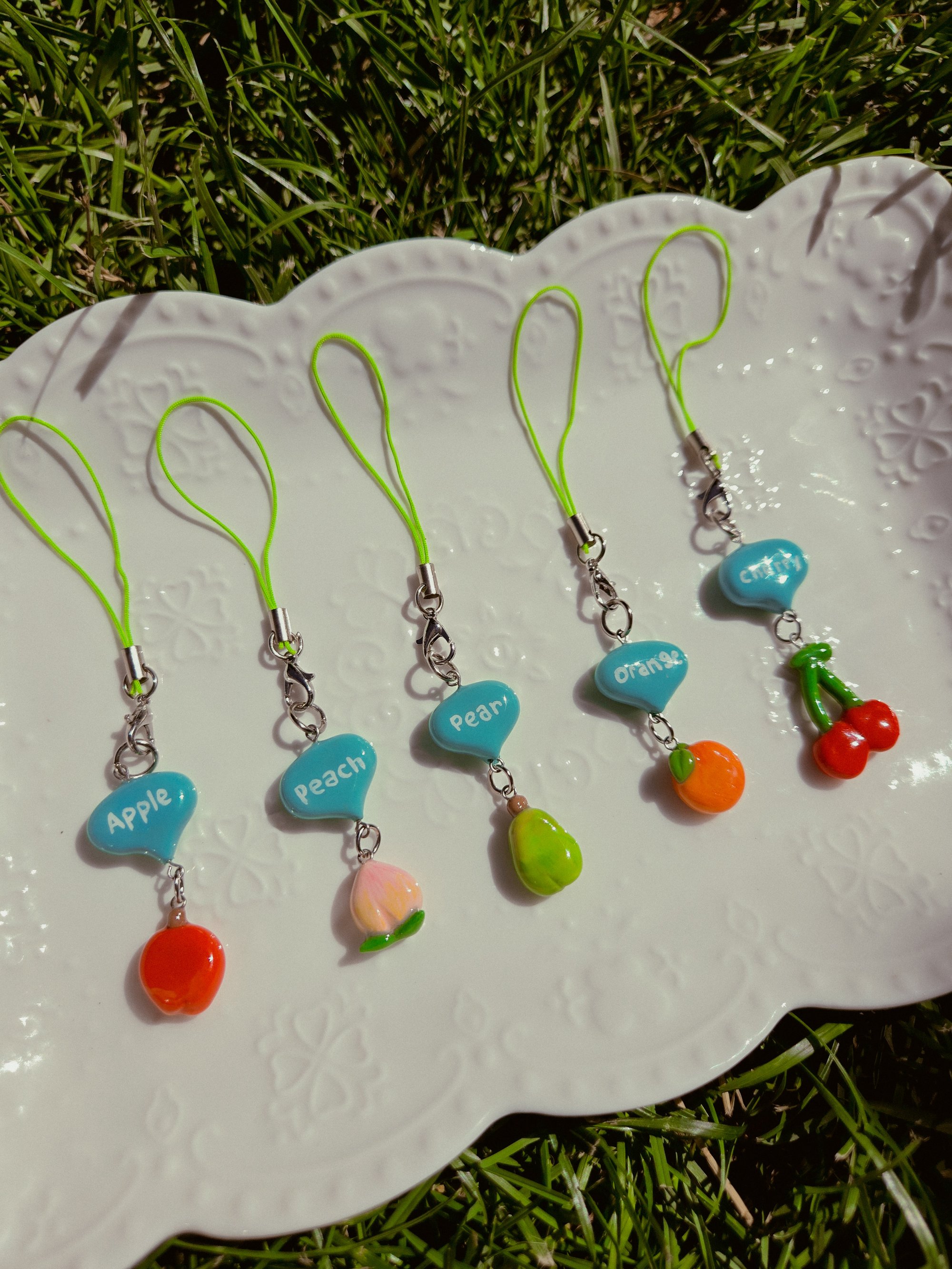 Bring a touch of cozy charm to your phone with these fruit phone charms! Inspired by your favorite village game, each charm features a tiny, colorful piece of fruit, hand-sculpted with care and full of personality. Clip one onto your phone, bag, or keychain for a sweet, playful accessory.