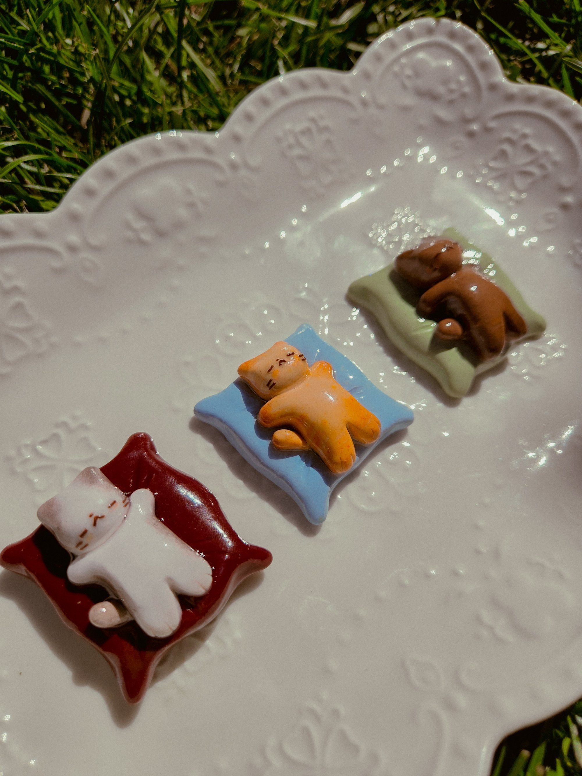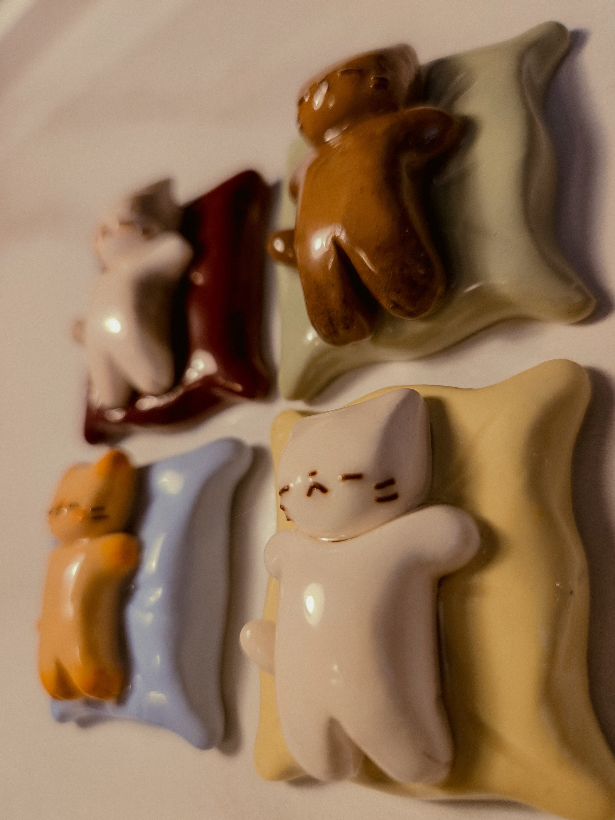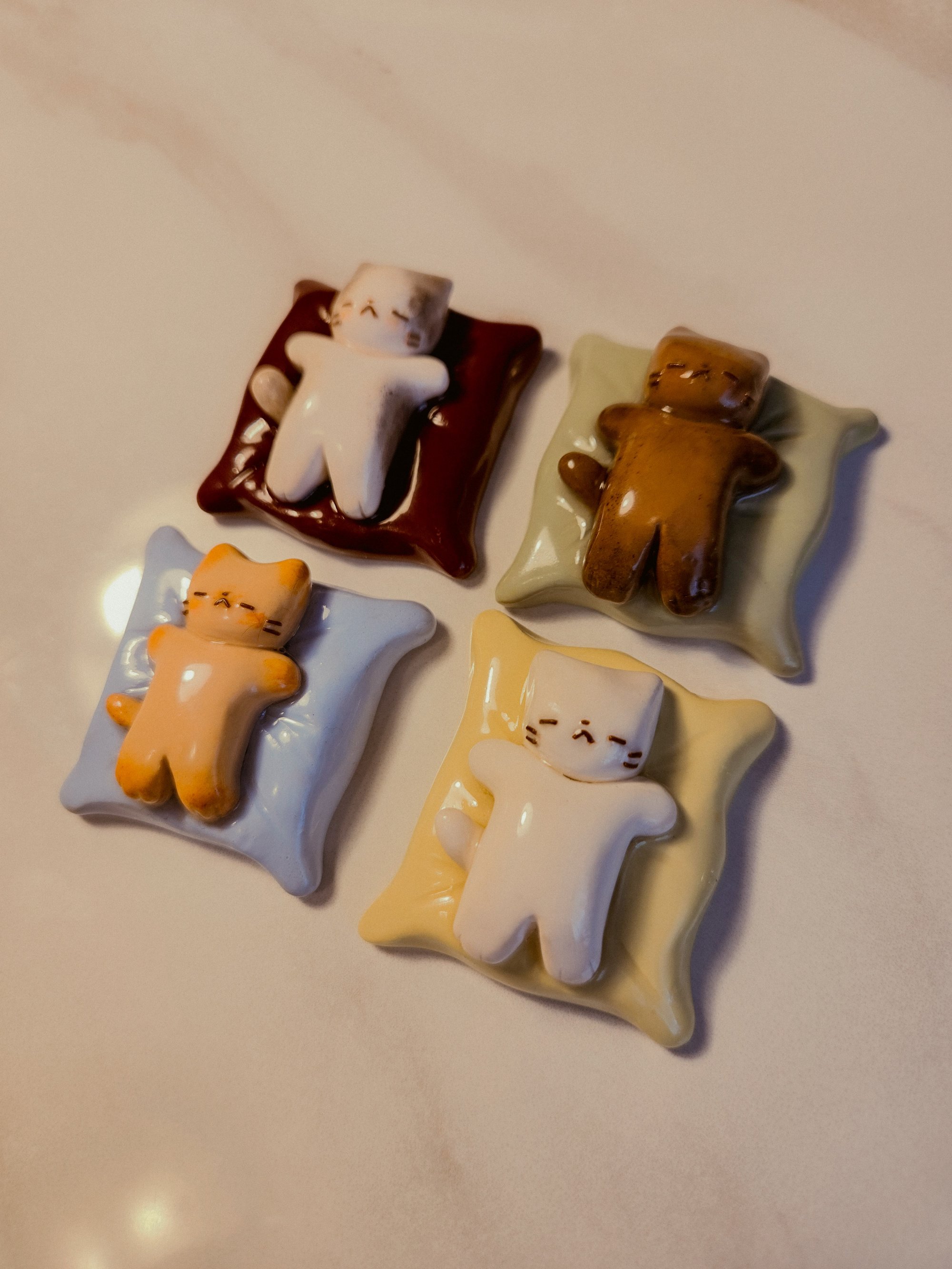Meet the Sleepy Kitty, the tiniest, coziest companion for your desk, kitchen, or workspace! Handmade from polymer clay, this little kitty comes in two versions: use it as a brush rest, pen rest, chopstick rest, or a cute magnet for your fridge. Each Sleepy Kitty is lovingly crafted, making it a perfect gift for cat lovers or anyone who needs a tiny bundle of calm and cuteness in their day.